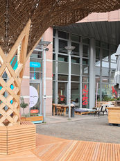 Mit dem TRIANGEL Transfer | Kultur | Raum wurde in der Innenstadt von Karlsruhe in unmittelbarer Nähe des KIT Campus Süd am Kronenplatz ein lebendiger Begegnungsort und ein Schaufenster an der Schnittstelle von Wissenschaft, Wirtschaft und Gesellschaft etabliert. Mit über 300 Veranstaltungen pro Jahr widmet sich das TRIANGEL mit seinen Partnern aus dem KIT, aus der Stadt und der Region insbesondere den Themen Wissenstransfer, Kreativität, Unternehmertum und Innovation. Viele der für die Öffentlichkeit zugänglichen Veranstaltungen finden auch auf dem nicht begrünten Kronenplatz statt, auf dem im Sommer Temperaturen bis zu 40 Grad herrschen können. Gemeinsam mit der Stadt Karlsruhe widmete sich das KIT der Lösung dieses Problems und startete ein Forschungsprojekt zur attraktiven und innovativen Gestaltung des Kronenplatzes.