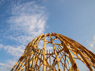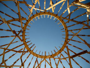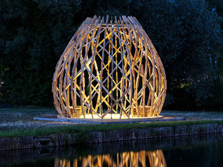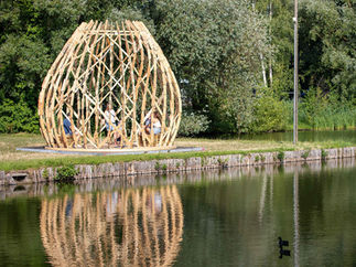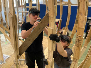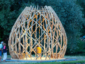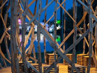 The "NAIL IT" pavilion is a construction made of recycled wood from Euro and disposable pallets. In total, the structure consists of 827 individual wooden parts that were geometrically recorded in a database. Through the use of computer-based design tools, these parts have been automatically assembled into 36 constructive ribs in a three-dimensional way. To produce these individual ribs, no floor plans or analogue drawings were used, but augmented reality. In this way, the structure has been assembled paperless at the interface between physical and digital perception. Wooden nails shot with compressed air were used to connect the wooden parts, guaranteeing a single-variety solution for coupling the elements.