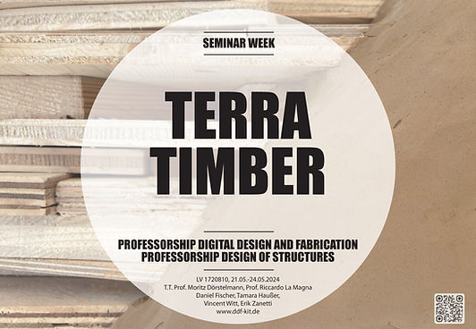 TerraTimber offers an opportunity to gain firsthand insights and experience in digital design and fabrication systems that enable circular, material-appropriate, and -efficient architecture. Utilizing computational tools and augmented reality, our goal is to upcycle wood waste and combine it with earth into a circular construction system. Based on concepts from previous studios, we will build a full-scale research demonstrator for the "Das Fest" festival in July 2024. This structure will showcase our research and serve as a pavilion for public discourse. We will be hands-on, sorting wood waste, applying computational concepts through augmented reality and crafting circular wood components.